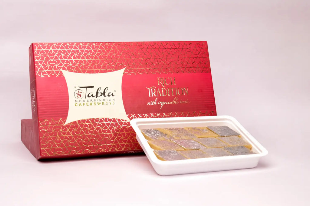 This premium 1 KG Tabla Box includes two 400 GM packs, ideal for gifting or celebrating special moments. With no artificial colors and authentic preparation, Kaju Katli brings the pure taste of tradition to every occasion.